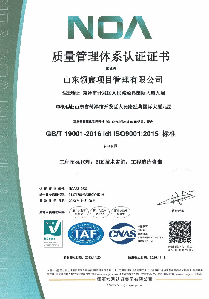山東領(lǐng)宸項目管理有限公司是一家以全過程工程咨詢?yōu)楹诵牡淖稍兎?wù)公司,本公司現(xiàn)具備工程造價咨詢乙級資質(zhì),房屋建筑工程、市政工程監(jiān)理乙級資質(zhì)和招標(biāo)代理備案。公司擁有專業(yè)的工作團隊及豐富的行業(yè)經(jīng)驗,在行業(yè)領(lǐng)域內(nèi)具有雄厚的實力,企業(yè)管理人員擁有行業(yè)20年以上的資深行業(yè)工作經(jīng)驗。公司現(xiàn)有專業(yè)技術(shù)人員50余人,具有一級注冊造價工程師、注冊監(jiān)理工程師、一級注冊建造師、二級注冊建造師、招標(biāo)師等工程類國家注冊執(zhí)業(yè)資格證書人員合計30余人以及高級工程師3人,持證上崗率達到90%......